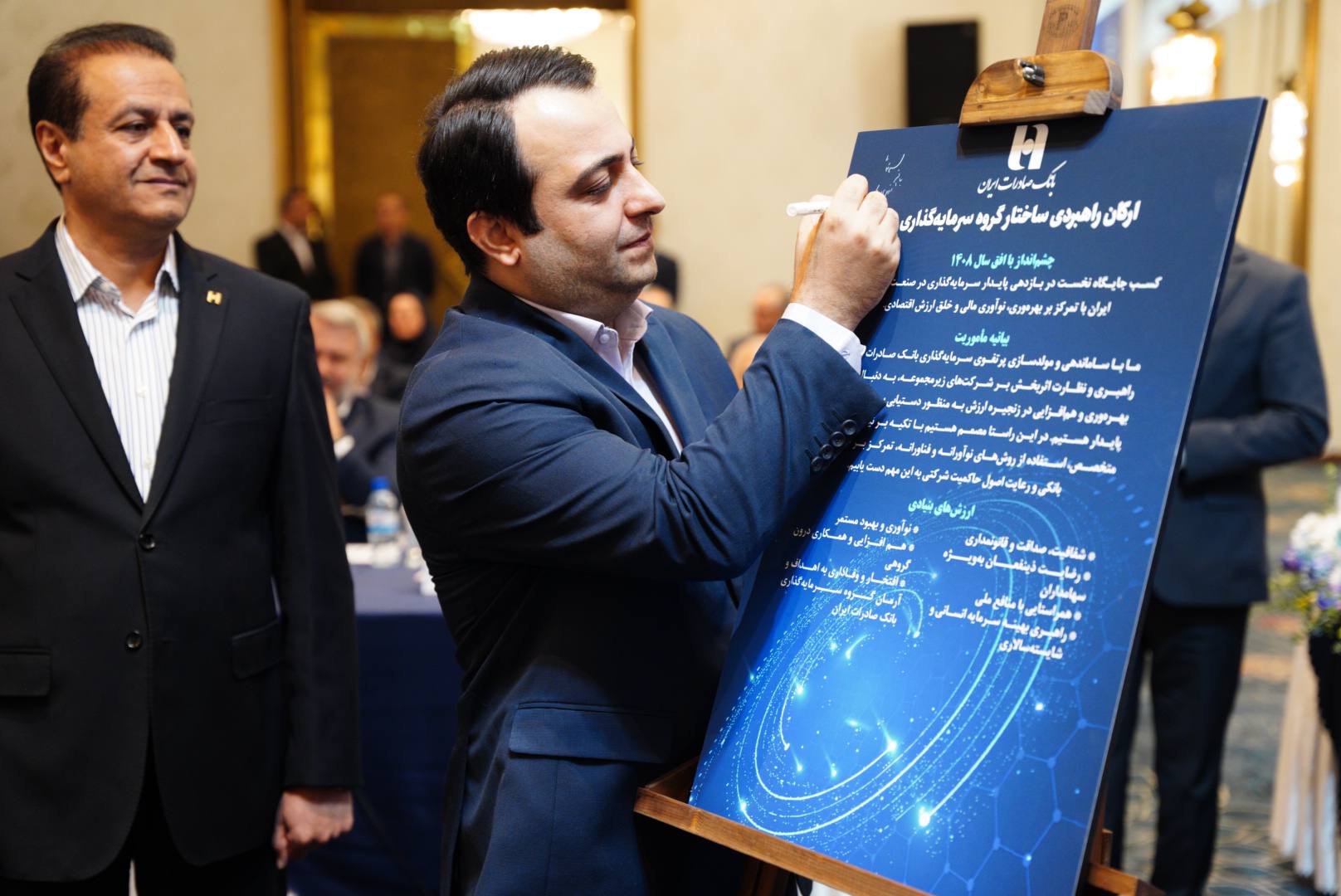 در این مراسم، از سند راهبردی ساختار گروه سرمایهگذاری بانک صادرات ایران رونمایی و از جمعی از مدیران تلاشگر و نوآور شرکتهای زیرمجموعه و ستاد بانک تقدیر شد.