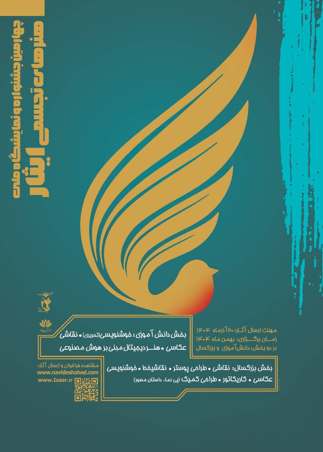 آخرین مهلت ارسال آثار بیستم آذرماه ۱۴۰۴ اعلام شده و نمایشگاه و مراسم اختتامیه جشنواره در بهمنماه همان سال برگزار خواهد شد.