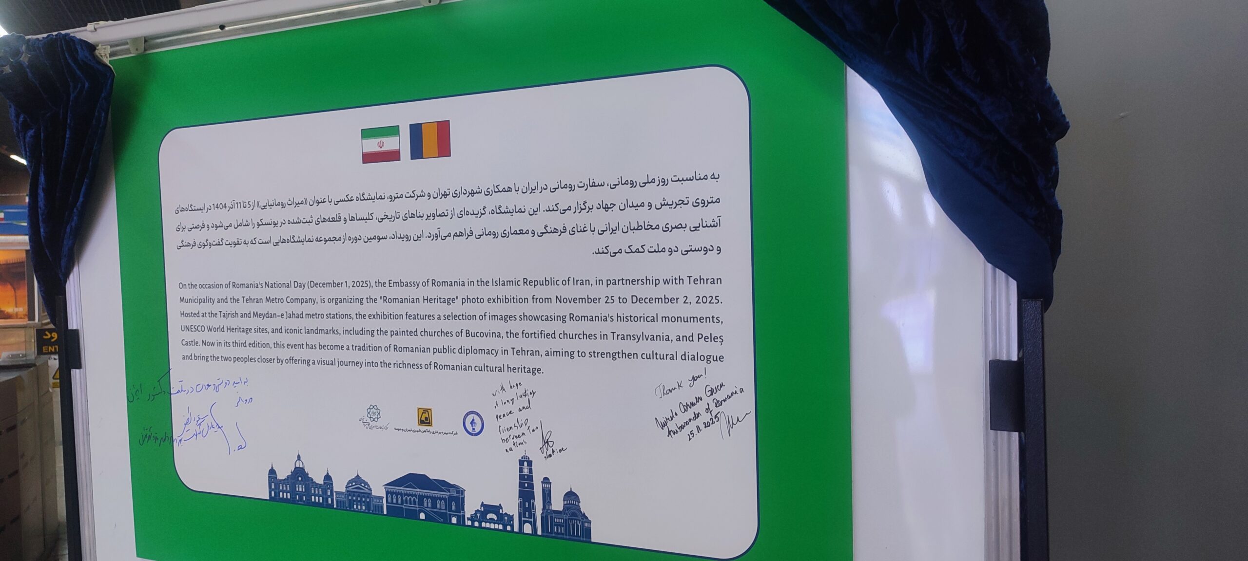 در اقدامی نوآورانه برای تقویت پیوندهای فرهنگی، نمایشگاه عکس ویژه روز رومانی امروز در ایستگاه مترو تجریش افتتاح شد. این رویداد با حضور مسعود لطفی، مدیرعامل شرکت بهره‌برداری مترو تهران و حومه، معاون بین‌الملل مرکز ارتباطات و امور بین‌الملل شهرداری تهران و سفیر رومانی در ایران، نمادی از گسترش تعاملات هنری میان دو کشور شد و نویدبخش فصل جدیدی از همکاری‌های فرهنگی است.