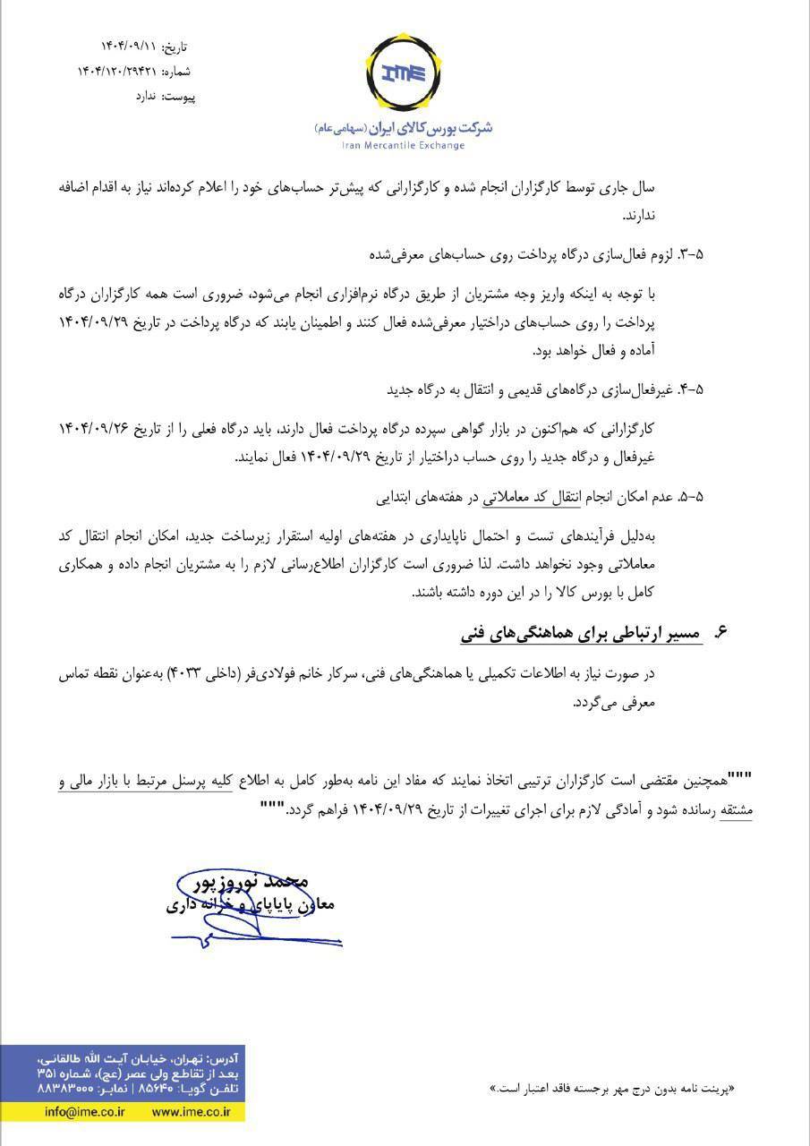 در راستای تسهیل معاملات برای سرمایه گذاران بازارهای مالی و مشتقه، پروژه تغییر زیرساخت حساب های عملیاتی بازار مشتقه در پایان روز چهارشنبه ۲۶ آذر عملیاتی و از روز شنبه ۲۹ آذر ماه جاری «بازارهای گواهی سپرده کالایی، قراردادهای آتی و قراردادهای اختیار معامله» در بستر جدید فعال خواهد شد.