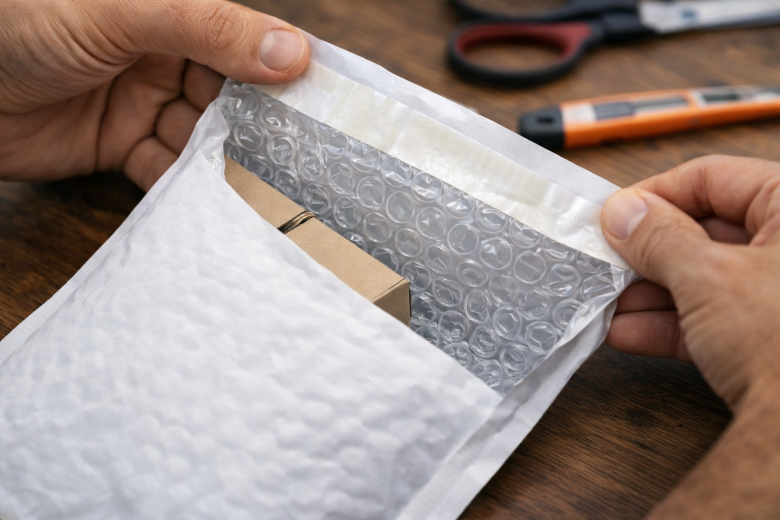 ۱) برای مرسولههای دارای گوشه تیز، همیشه یک لایه محافظ (کاغذ/فوم سبک) اضافه کن تا درز پاکت تحت فشار باز نشود.