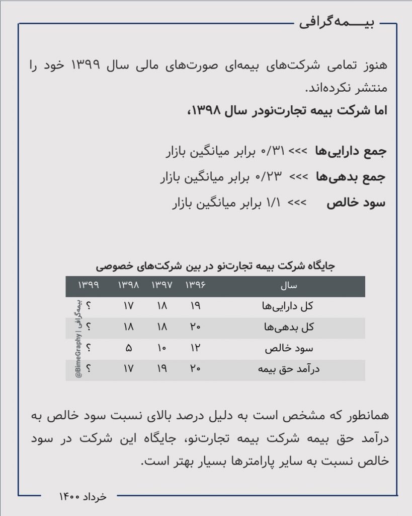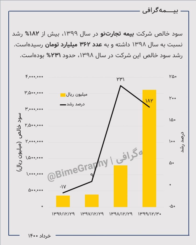 ۱۸۲% رشد سود خالص شرکت بیمه تجارت‌نو در سال ۱۳۹۹