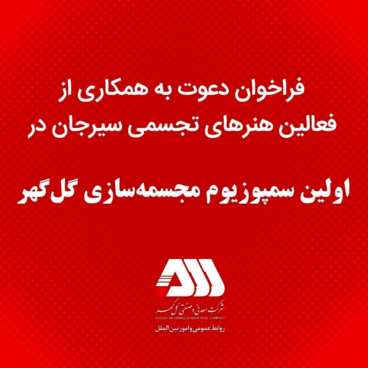 شرکت گل گهر در راستای هدف حمایت از فرهنگ دوستان و هنرمندان سیرجانی در این حوزه در نظر دارد، در این رویداد هنری فرصتی برای کسب تجربه در اختیار هنرمندان بومی شهرستان سیرجان قرار دهد. به همین منظور از علاقمندان گرامی، دعوت می نماید جهت حضور در این سمپوزیوم با تکمیل و ارسال فرم مربوطه به آدرس ایمیل زیر ثبت نام نمایند.